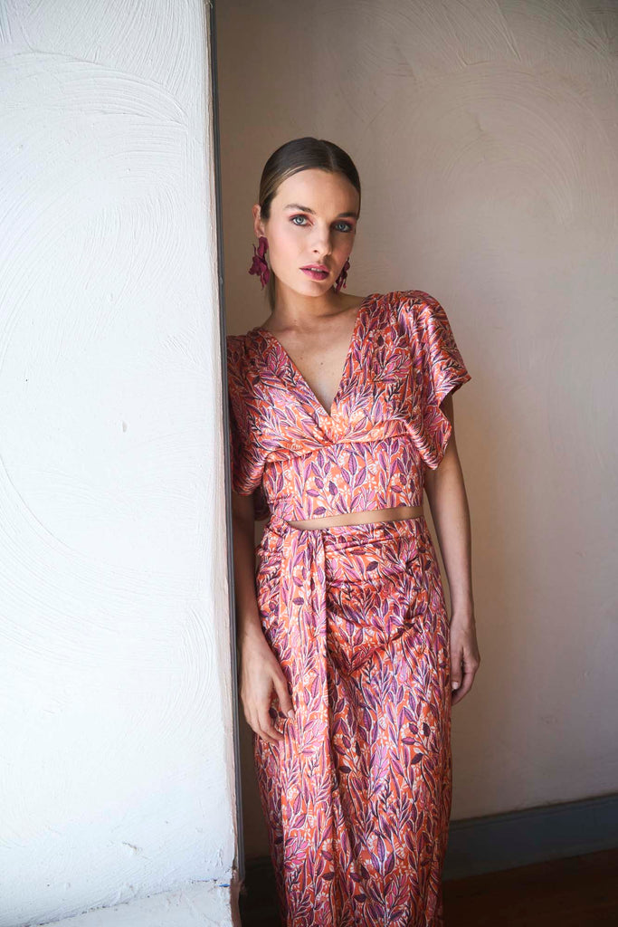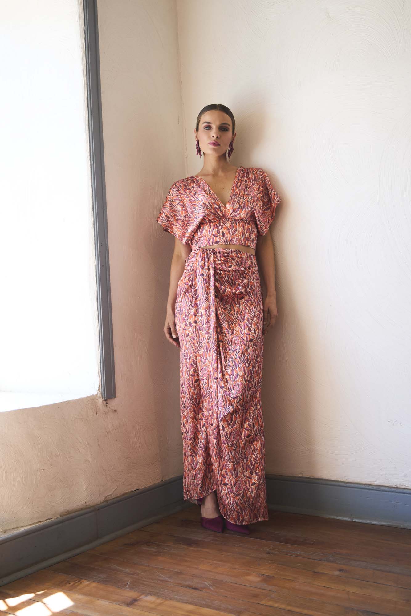 - Detalle de pliegues en la cintura que estilizan la silueta.