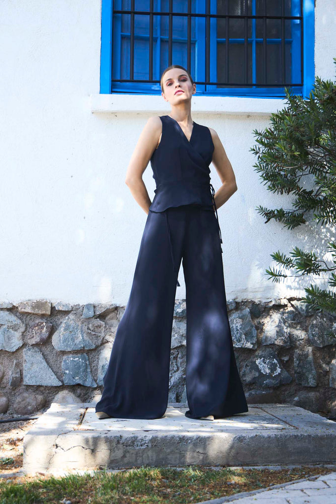 Pantalón palazzo de tiro alto.