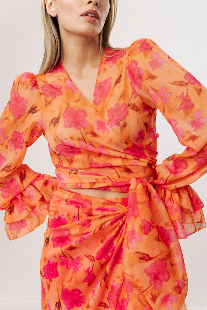 Blusa Overlap Flowers Orange