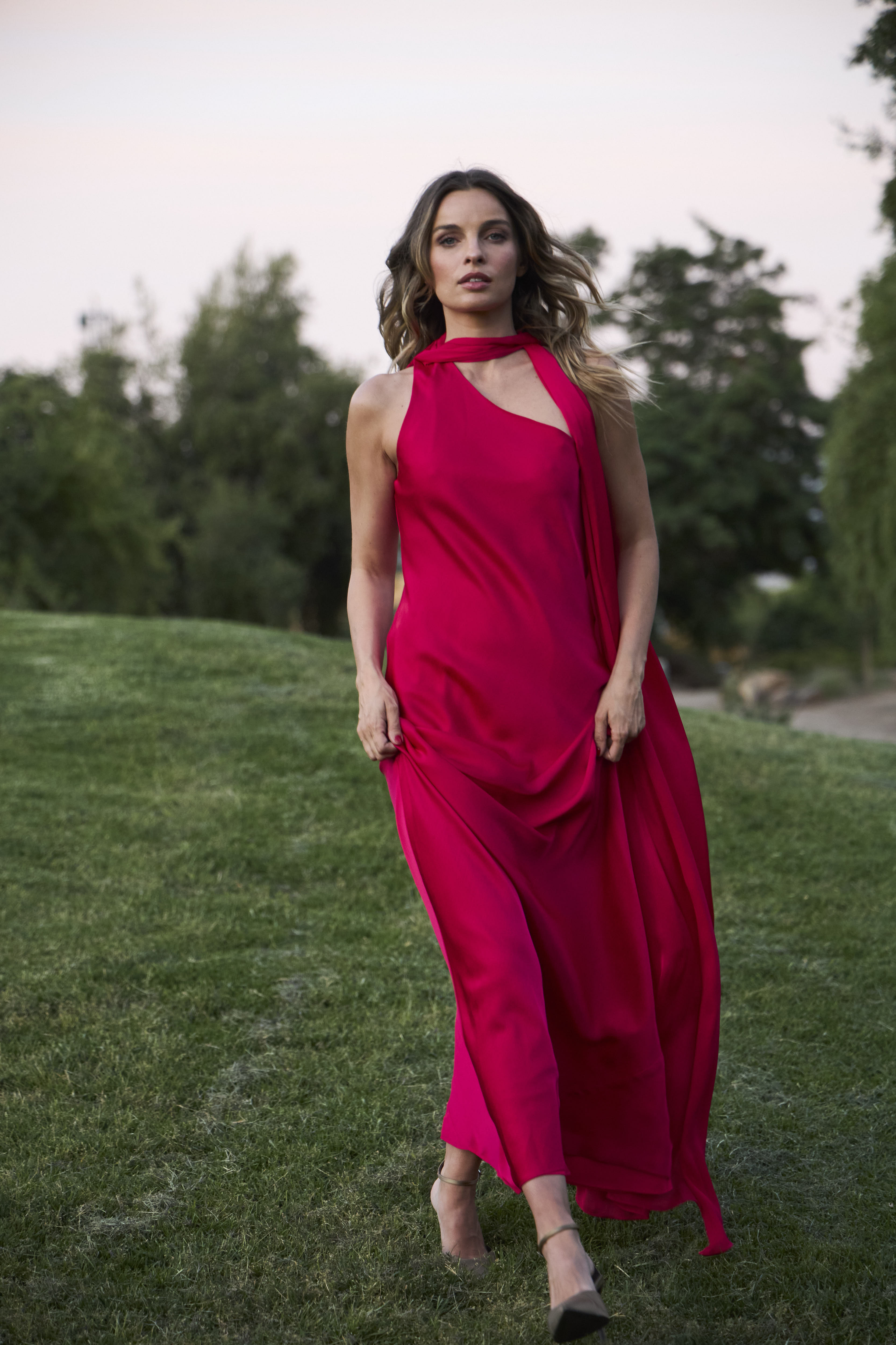 - Presenta una segunda capa asimétrica que permite jugar con el vestido y su versatilidad.